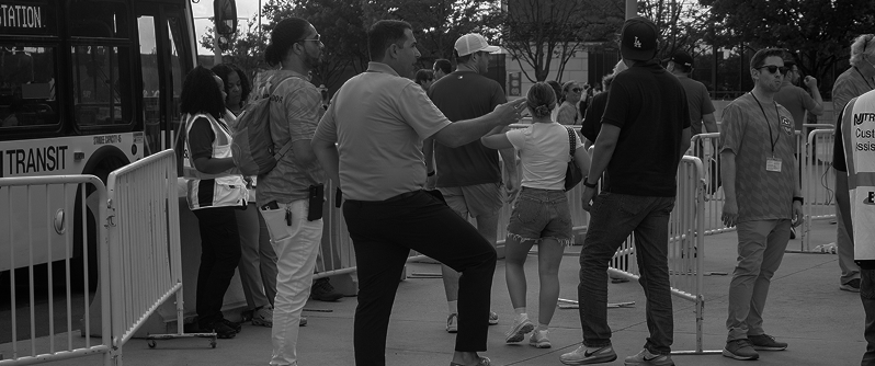 Boarding Zone “B” (Blue) at 33rd Street & 7th Avenue - Ticket Inspection & Boarding: Upon arrival, ticketholders must proceed to their designated Boarding Zone to enter the queue. Staff wearing red (Boarding Zone A) or blue (Boarding Zone B) vests will check match tickets and NJ TRANSIT rail tickets to NYNJ Stadium before allowing entry.